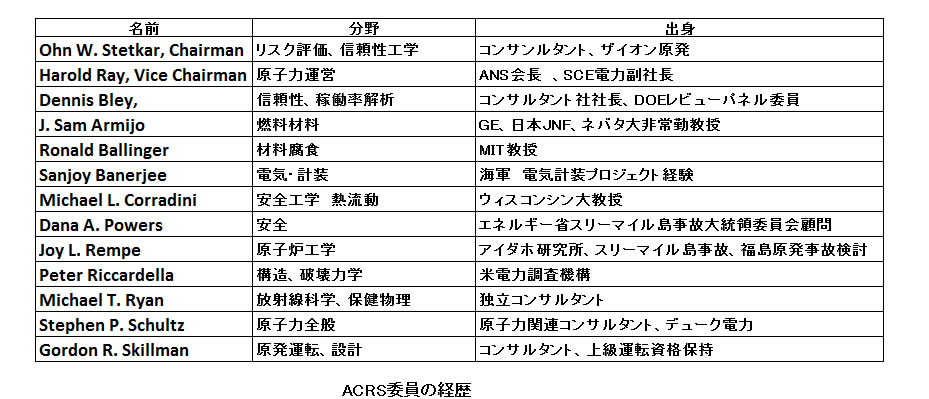 本来このような審査は規制庁職員が主体で実施すべきところだ。しかし規制委員が直接審査にあたっている。審査には有識者や外部委員の協力を得ているが、これらの人材には実務経験が不足しており、技術的な判断をするには、米国のACRSに比べては見劣りする。
