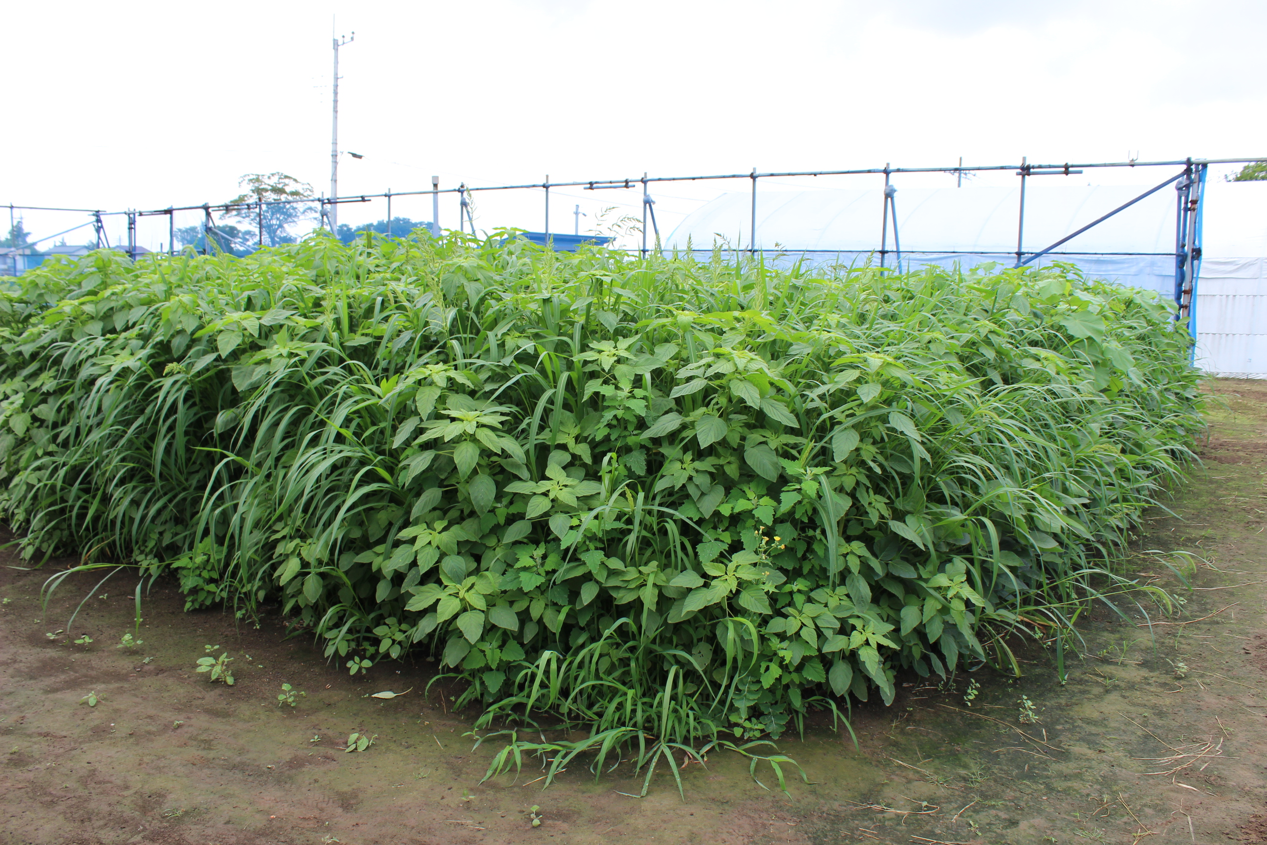 (写真7)除草剤グリホサートを撒かなかった雑草だらけの大豆畑