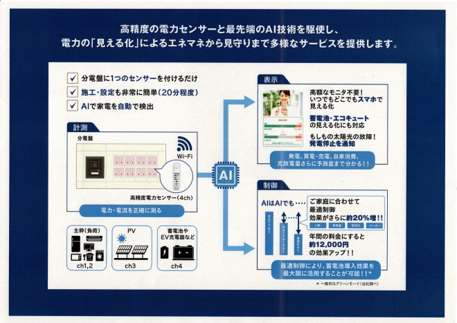 上の写真は東京電力PGがPvexpoで掲げていたパネルだが(画像はPv expoでの同社の頒布資料を画像化した)、この「うちワケ」というサービスの特徴は、目的の明確さと、機器構成のシンプルさにある。