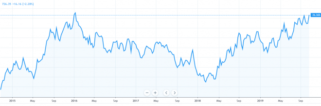 地下鉄運賃値上げの背景の一つとして説明されているチリペソの減価だが、確かに2018年から2019年にかけて20%近くペソ安になっている。