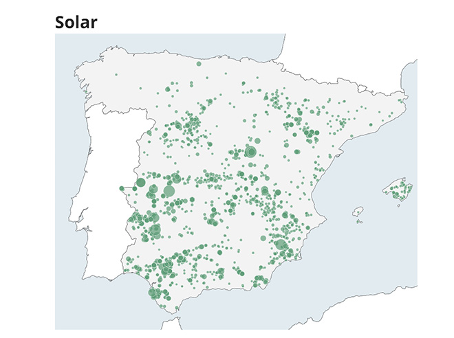 図7 スペイン国内の太陽光発電の分布