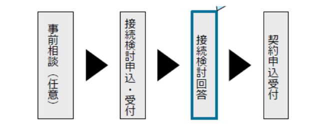 もし、同じ送電線に2件以上の「接続検討申込み」があった場合は、先着順に検討を行う。すなわち、先に申し込んだ会社が空き容量を確保し、空き容量がゼロになった場合は、後から申込みをした会社には「提供不可能」という回答になる。